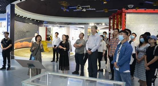 空间学院代表一行首先参观了航天五院展览厅,了解了航天五院的创办历史、企业文化、人才培养以及取得的突出成就和杰出代表。对卫星通信、卫星导航、雷达遥感与探测、高速数传、激光通信、卫星测控、星间链路和空间天线等重点研究方向有了更深入的认识,对“航天奉献精神”和“新时代北斗精神”有了更加深刻的体会。