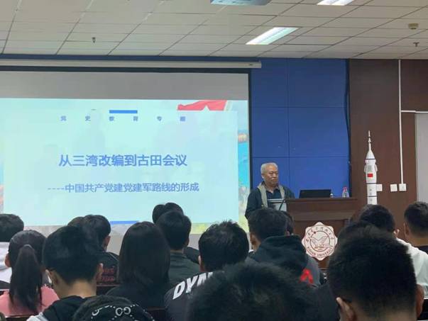 (通讯员 尚保强、冯献礼)4月11日晚上,空间科学与技术学院党委邀请学校党史学习教育宣讲团成员杨选德教授以“从三湾改编到古田会议”为题讲授党史学习专题党课,学院100余名学生参加学习,活动由学院团委书记、本科生辅导员郑瑞博主持。