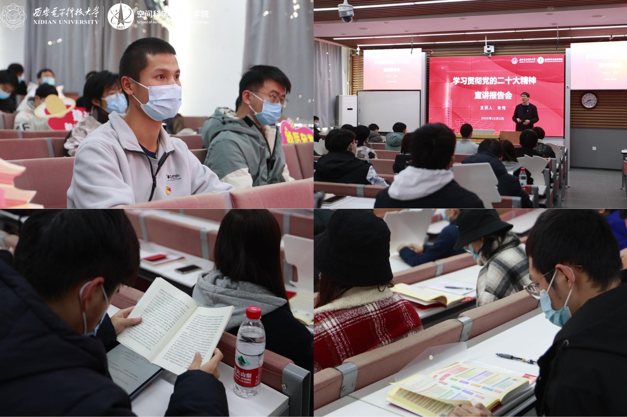 为学习贯彻党的二十大精神,12月2日下午,空间科学与技术学院党委举办学院第三场党的二十大精神专题宣讲会暨《中国共产党章程(修正案)》专题学习报告会,学院党委书记朱伟作专题辅导,学院入党积极分子、班团骨干与团员代表等近50人参加专题学习。