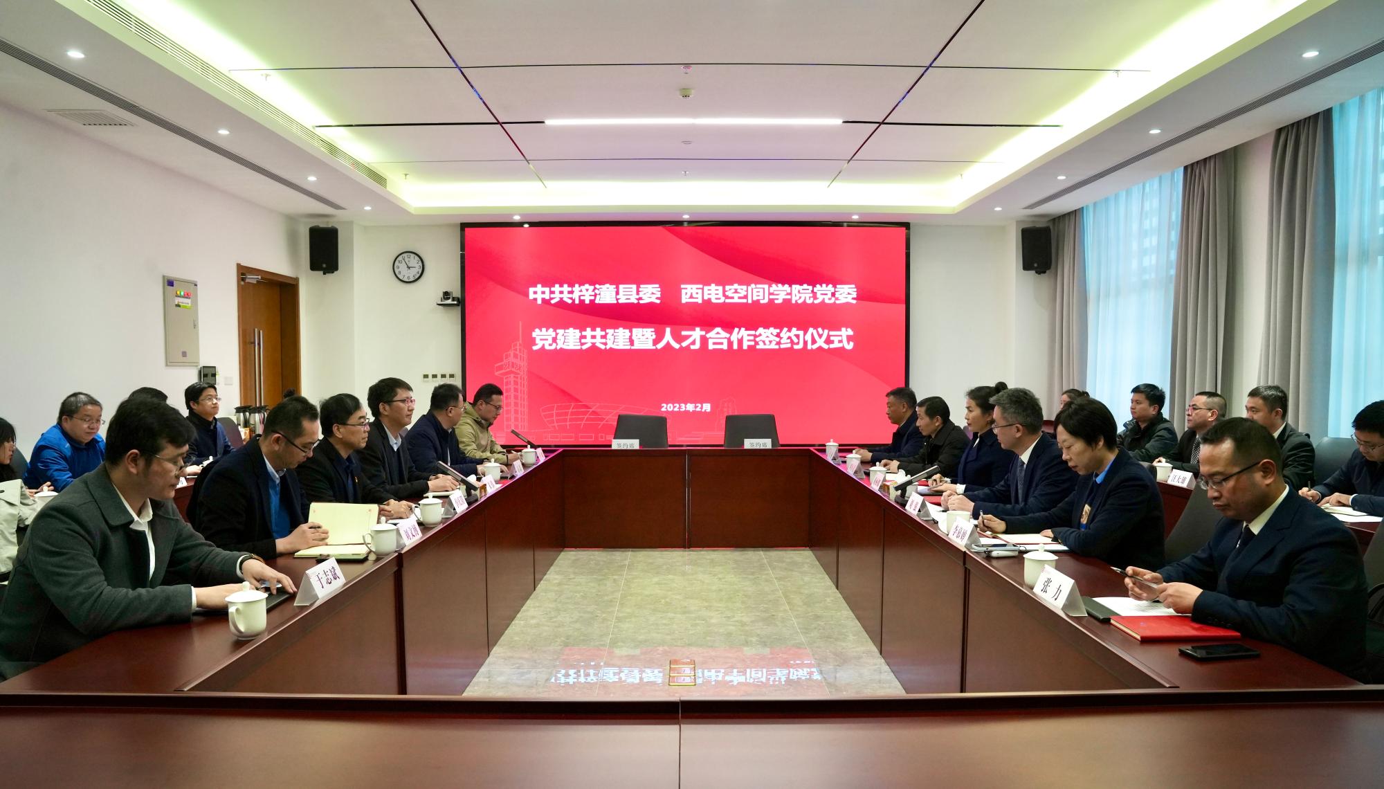 此次活动作为绵阳市“绵阳造”西安行系列活动的重要组成部分,重点围绕党建共建、人才培养、文化交流、人才合作等方面开展深入对接。在党建共建合作会上,空间科学与技术学院党委与中共梓潼县委签署党建共建暨人才工作协同发展合作框架协议,双方将本着“党建引领、服务发展、开放共享、合作共赢”的原则,聚焦数字经济、乡村振兴、科技产业等重点领域,开展多方位、深层次的校地合作。