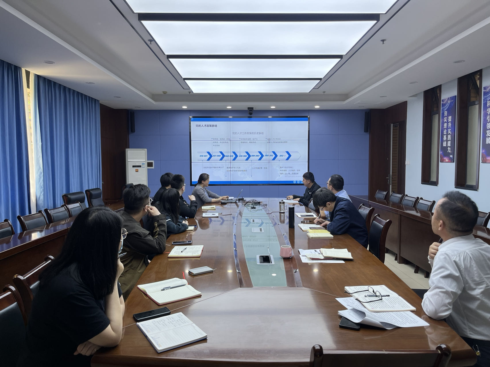 姜莉莉以“党的人才政策溯源及学习体会”为主题,为支部党员带来一节主题鲜明、内容丰富的党课。党课系统梳理了党在不同历史阶段的人才政策,不同阶段的人才工作政策因不同的世情、国情、社情有所不同,但是始终不变的是党对人才的重视、尊重、引领和造就。党的十八大以来,以习近平同志为核心的党中央,更是将人才放到了更加突出的位置,在党的二十大报告中更是提出必须坚持科技是第一生产力、人才是第一资源、创新是第一动力,深入实施科教兴国战略、人才强国战略、创新驱动发展战略,开辟发展新领域新赛道,不断塑造发展新动能新优势。充分体现了党对人才成长发展规律的准确把握和认识。支部成员要认真学习习近平总书记关于人才、科技、创新等方面的重要论述,以更加高效的工作能力、更加周到的服务水平、更加先进的工作理念,服务好学院师生,切实为师生的成长和发展贡献心智。