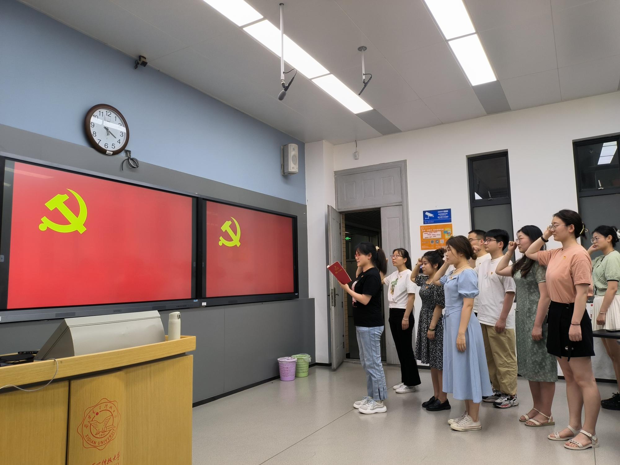活动伊始,2023届毕业生党员在于悦洋的带领下重温入党誓词,回望初心使命,坚定理想信念。