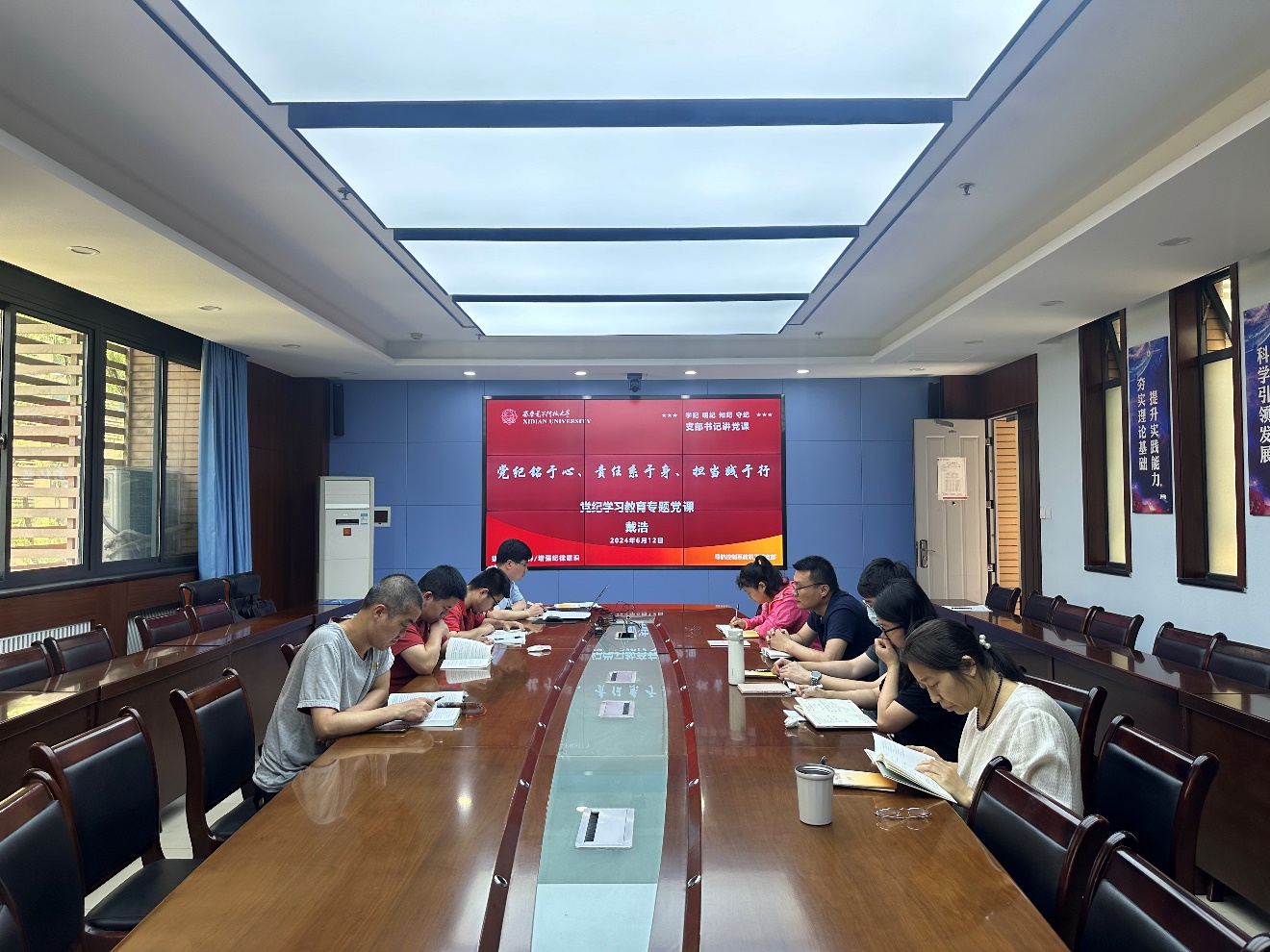 随后,支部书记戴浩以“党纪铭于心、责任系于身、担当践于行”为题讲授了党纪学习教育专题党课。戴浩带领支部全体与会教师学习了习近平总书记关于全面加强党的纪律建设的重要论述,剖析了党中央对《中国共产党纪律处分条例》进行三次修订的深远意义。他表示,加强党的纪律建设是一项长期而艰巨的任务,要深刻认识加强党的纪律建设的重要性,深刻领会开展党纪学习教育的必要性,通过党纪学习教育,支部全体教师要更加坚定理想信念,严明党的纪律,做到学有所得、学有所悟、学有所用,将党纪学习教育成果转化为推动工作的强大动力,进一步推动党的教育事业不断向前发展。