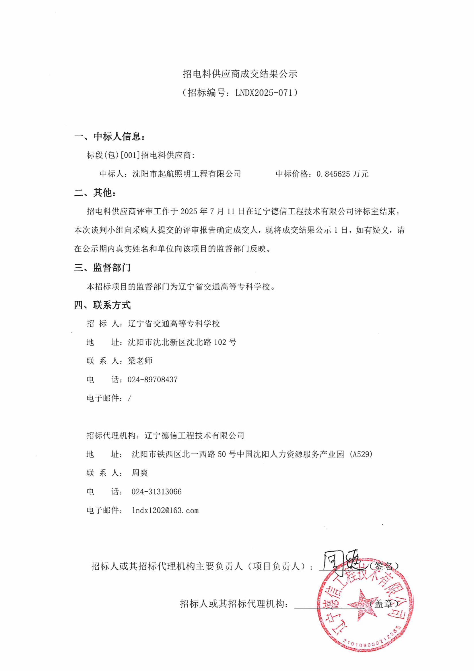 辽宁省交通高等专科学校学生公寓空调系统配套电力增容工程结果公告