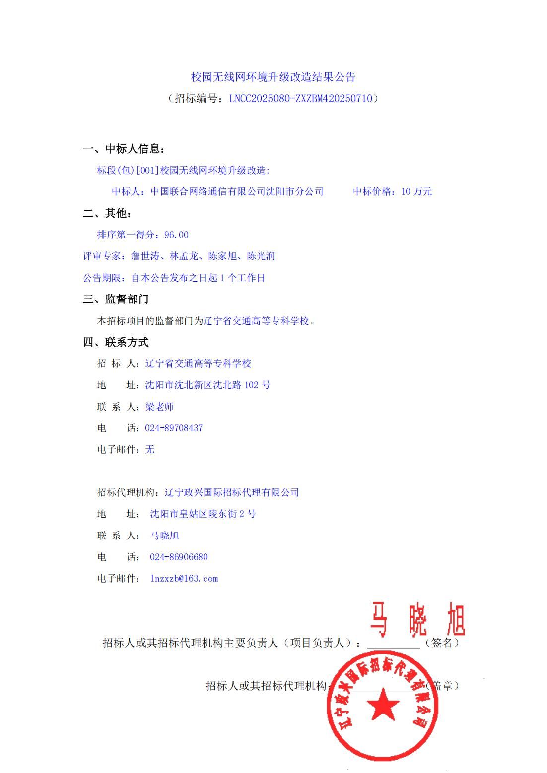 校园无线网环境升级改造结果公告(LNCC2025080)