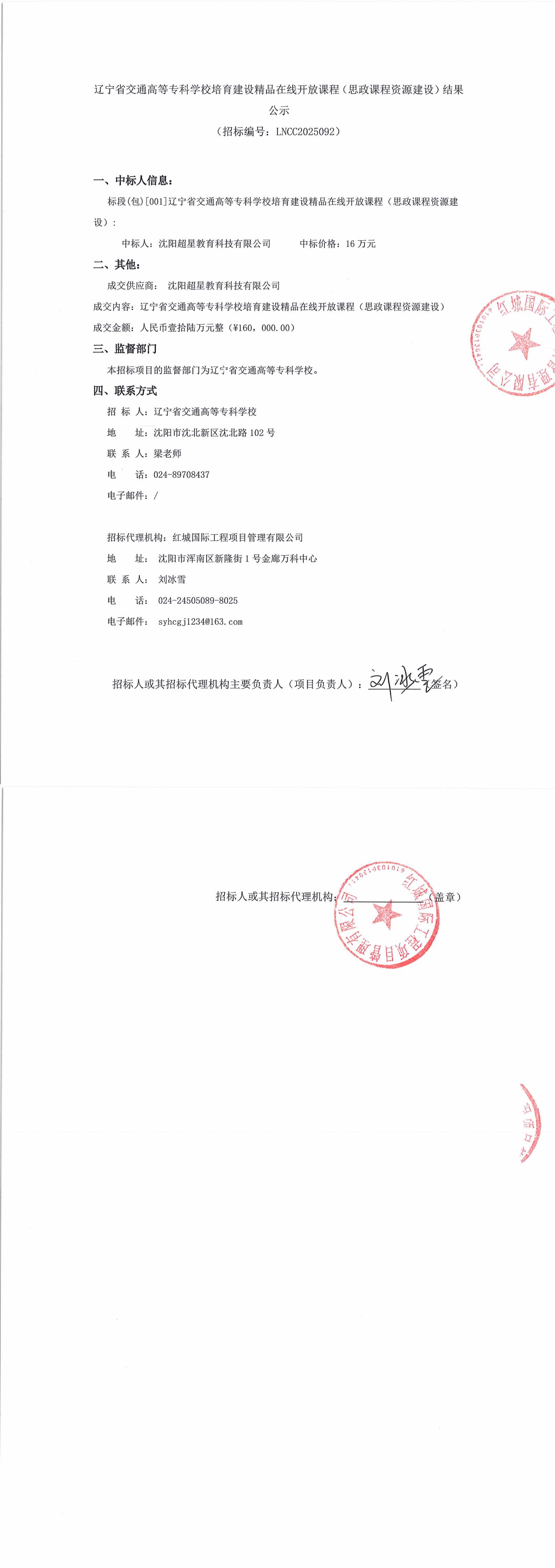 培育建设精品在线开放课程(思政课程资源建设)采购项目结果公告(LNCC2025092)