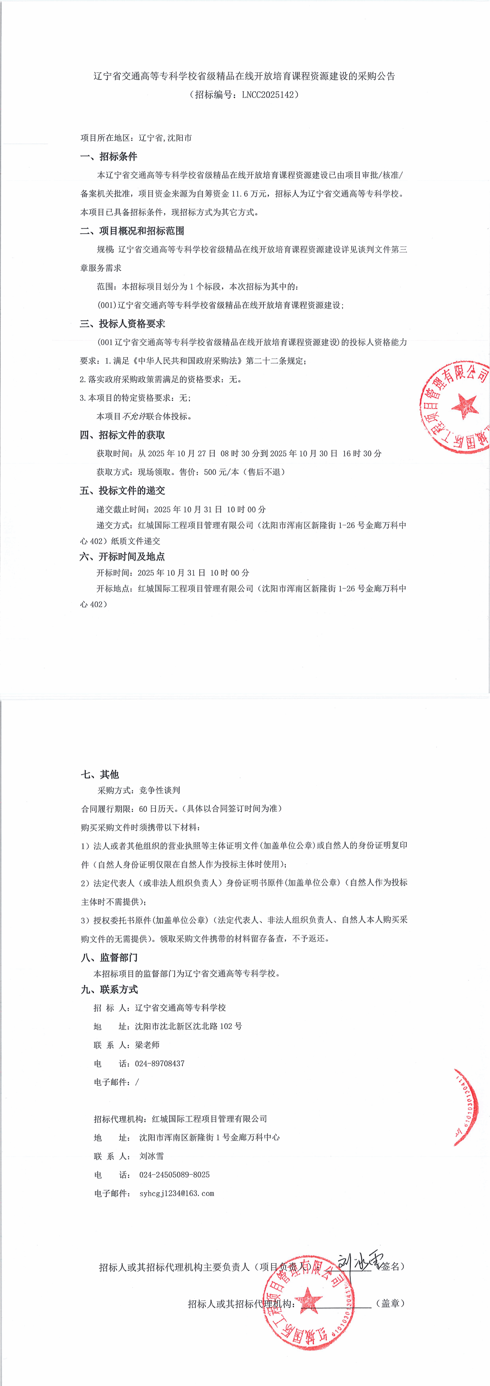 省级精品在线开放培育课程资源建设项目招标公告(LNCC2025142)