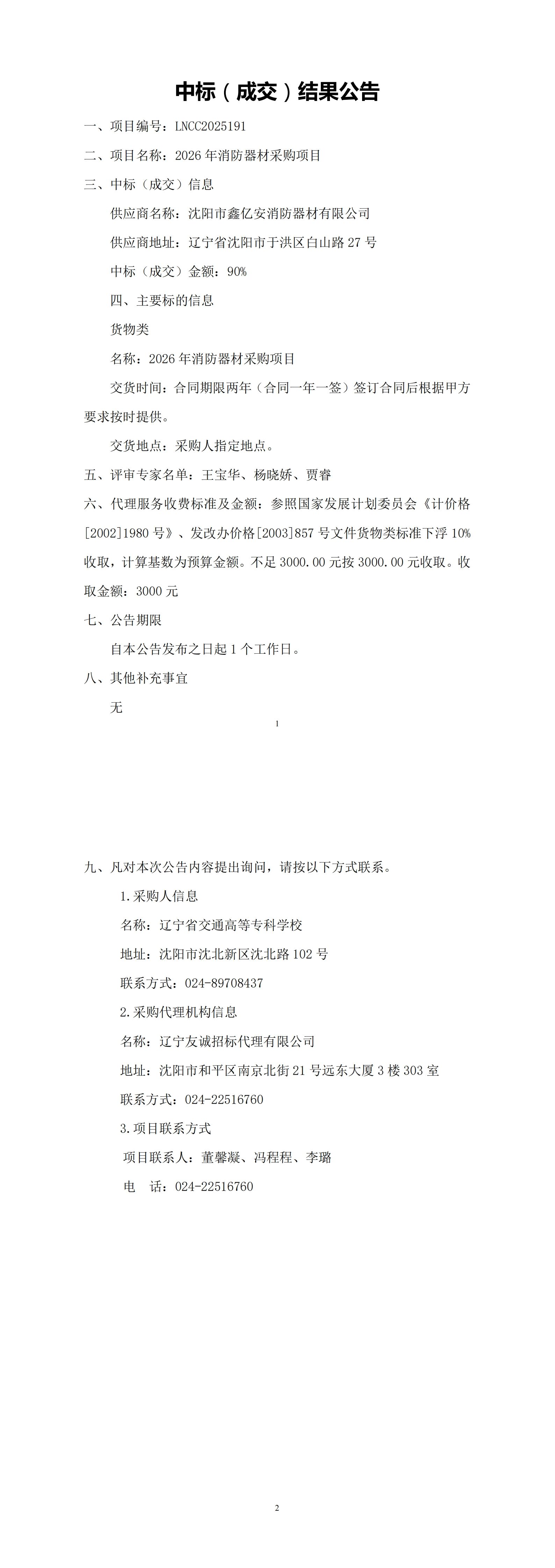 上一篇:2026年消防维保采购结果公告(LNCC2025192)