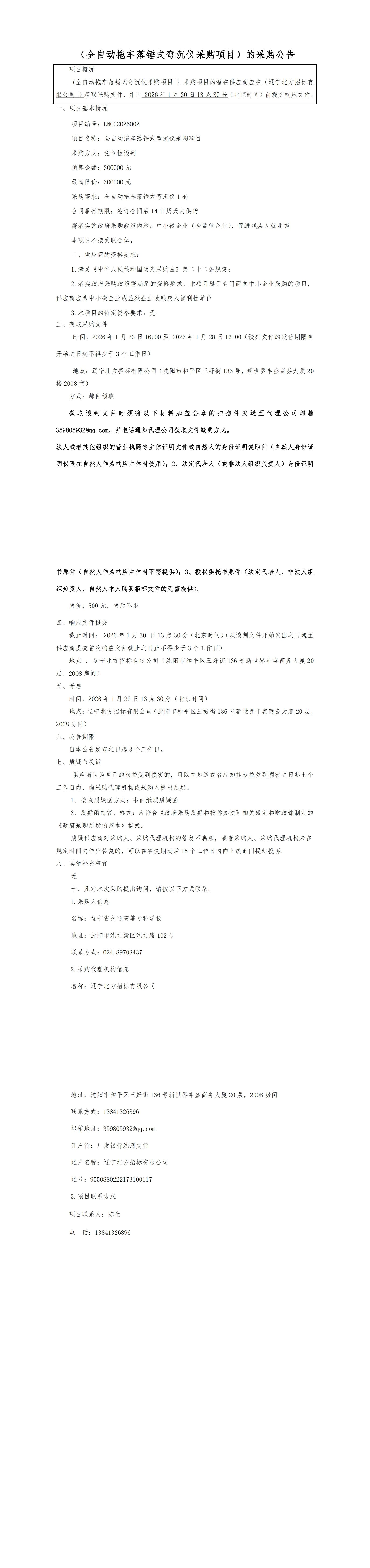 全自动拖车落锤式弯沉仪采购项目采购公告(LNCC2026002)