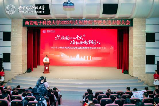 9月8日,西安电子科技大学2022年庆祝教师节暨先进表彰大会在南校区大学生活动中心小剧场隆重召开,党委书记查显友向全体教职工送上节日的祝福,向所有受表彰的老师表示热烈的祝贺,希望大家坚守初心使命,努力培养担当民族复兴大任的时代新人,勇担服务国家高水平科技自立自强使命。