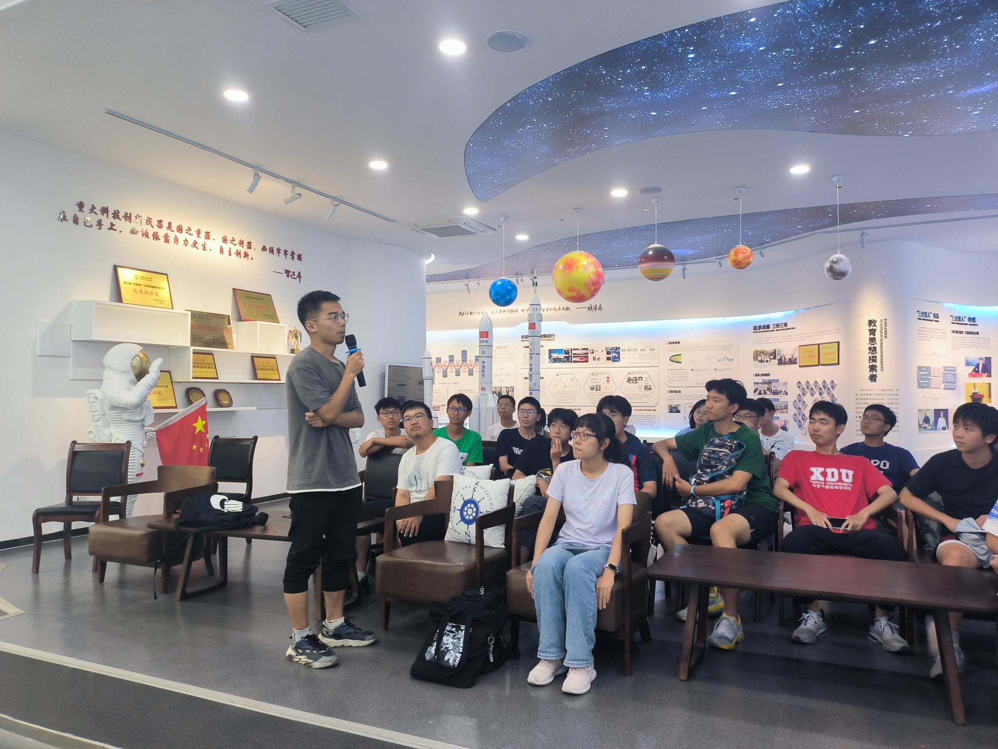 交流座谈会后,全体同学参观钱学森精神教育基地,2021级钱学森班班长任晨浩为大家讲解。他从“人民科学家钱学森” “科学精神传承者” “教育思想探索者”三个部分,全面、具体地向同学们讲述钱学森“矢志报国,问鼎苍穹”的情怀和“胸怀祖国、服务人民”的精神。同学们参观后深有感触,2022级钱学森班班长程炳尧说:“终于能亲眼看到、亲手触碰到老一辈航天人矢志报国、砥砺奋进的历史,这让我对中国载人航天精神有了更加深刻的认识,也更加坚定了我投身航天报国的志向。”