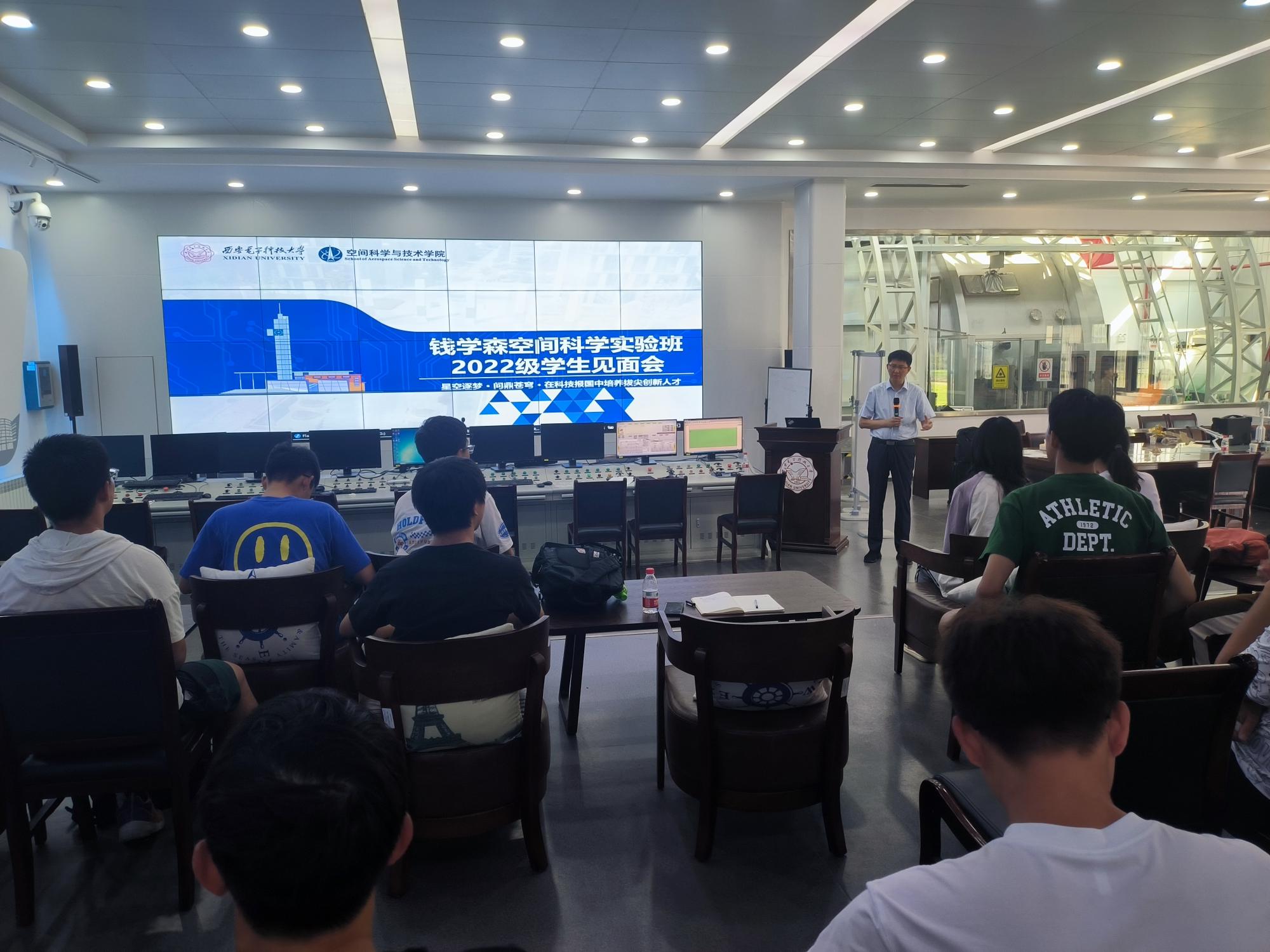 朱伟代表学院向2022级钱学森班同学表示诚挚欢迎,并从学院发展历程、专业特色、人才培养、科研成果等方面做了简要介绍。他强调,钱学森班设立之初即面向我国航天事业和空间科学快速发展需求,瞄准未来空间电子信息需求,培养具有浓厚家国情怀和坚定航天理想的复合型空间电子信息拔尖创新人才。希望同学们牢记钱老嘱托,传承西电红色基因,胸怀祖国,刻苦学习,一定要在本科阶段夯实专业知识基础,强化专业实践和工程实践,脚踏实地,仰望星空,立志在中华民族伟大复兴的关键节点上为中国航天事业发展贡献青春智慧。