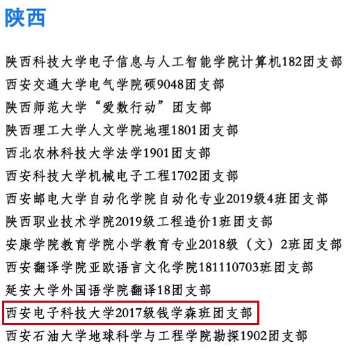 西电新闻网讯(通讯员 郑瑞博 尹鹏)为深入贯彻落实“全团大抓基层”、“全团抓学校”部署,深化高校共青团改革,强化“一切工作到支部”理念,在团中央基层建设部指导下,中国青年报社开展“活力团支部炼成记”2020—2021学年高校活力团支部遴选及展示活动,经校级申报、省级初评、展示点赞、全国终审等环节,空间科学与技术学院2017级钱学森班团支部从1600所高校推荐的代表性团支部中脱颖而出,获评2020-2021学年高校活力团支部。