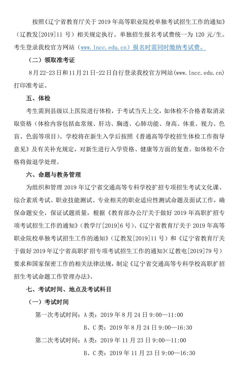 【2019】辽宁省交通高等专科学校2019年高职扩招专项考试招生工作实施方案